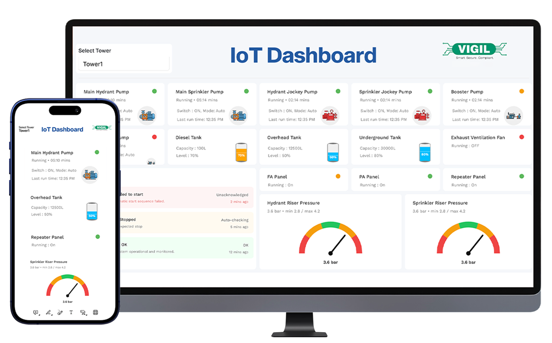 Vigil’s intelligent platform bridges the gap between compliance and convenience. With IoT-powered ACMS for Fire Safety, it ensures that fire systems remain active, monitored, and ready—24 hours a day.