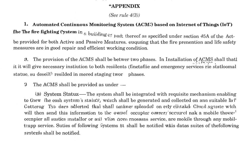 The latest amendment makes it mandatory for premises falling under the section 45(a) and (b) to have acms/fire iot and submit the Form B1 twice a year.